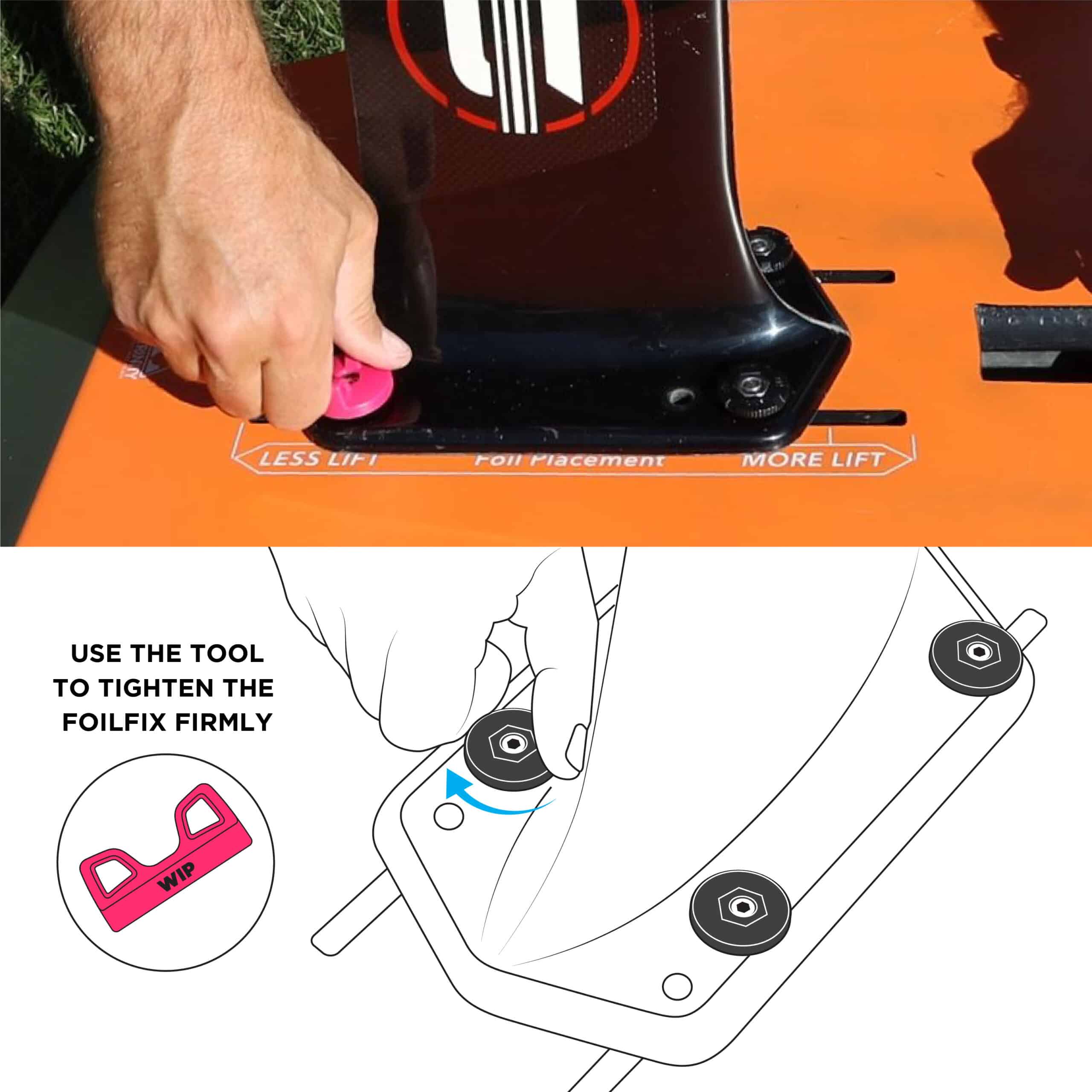 An innovative solution to mount a foil on board in 30 seconds.