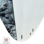 A relatively full nose into smooth outline curve feeding into a wider area pintail. This provides a smooth balanced and stable platform to start with.